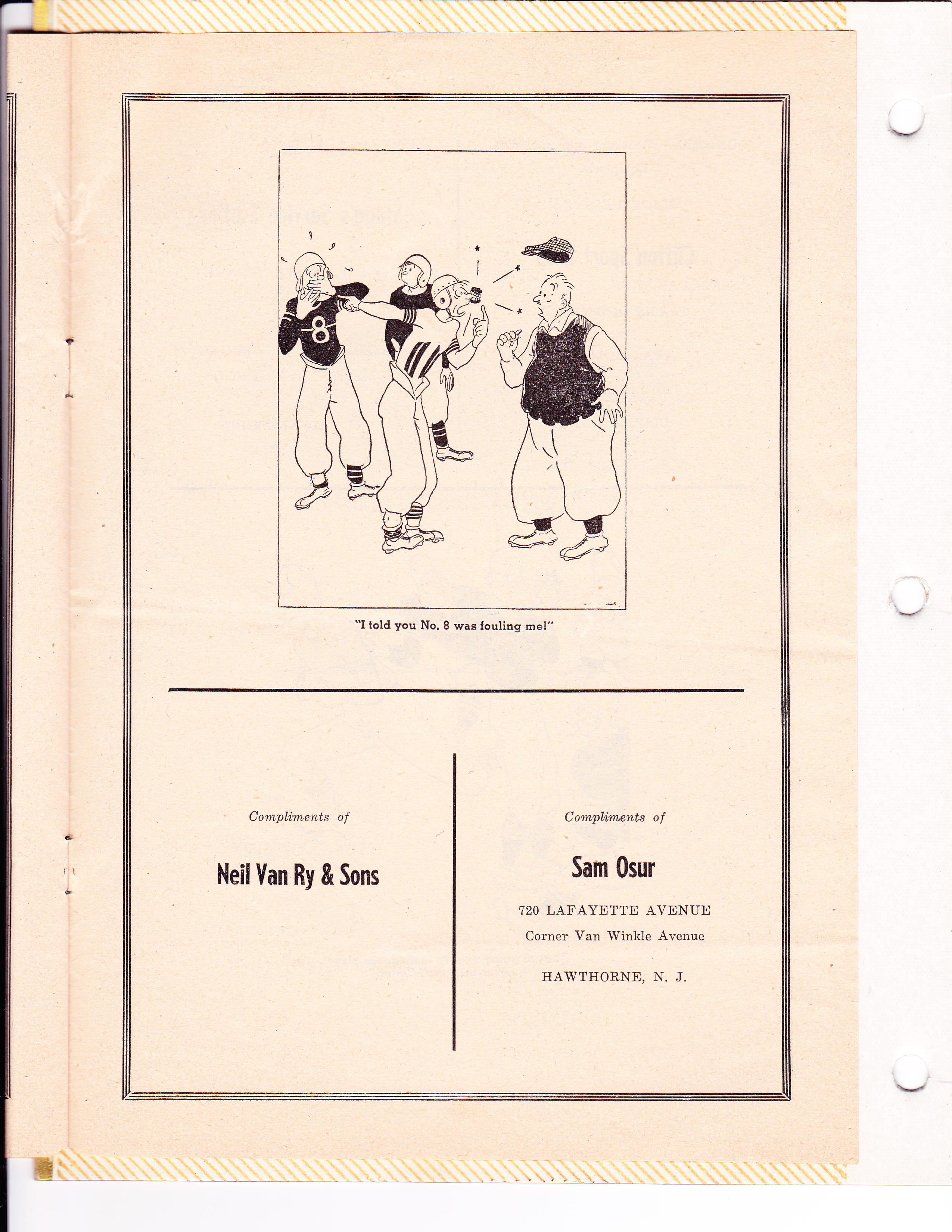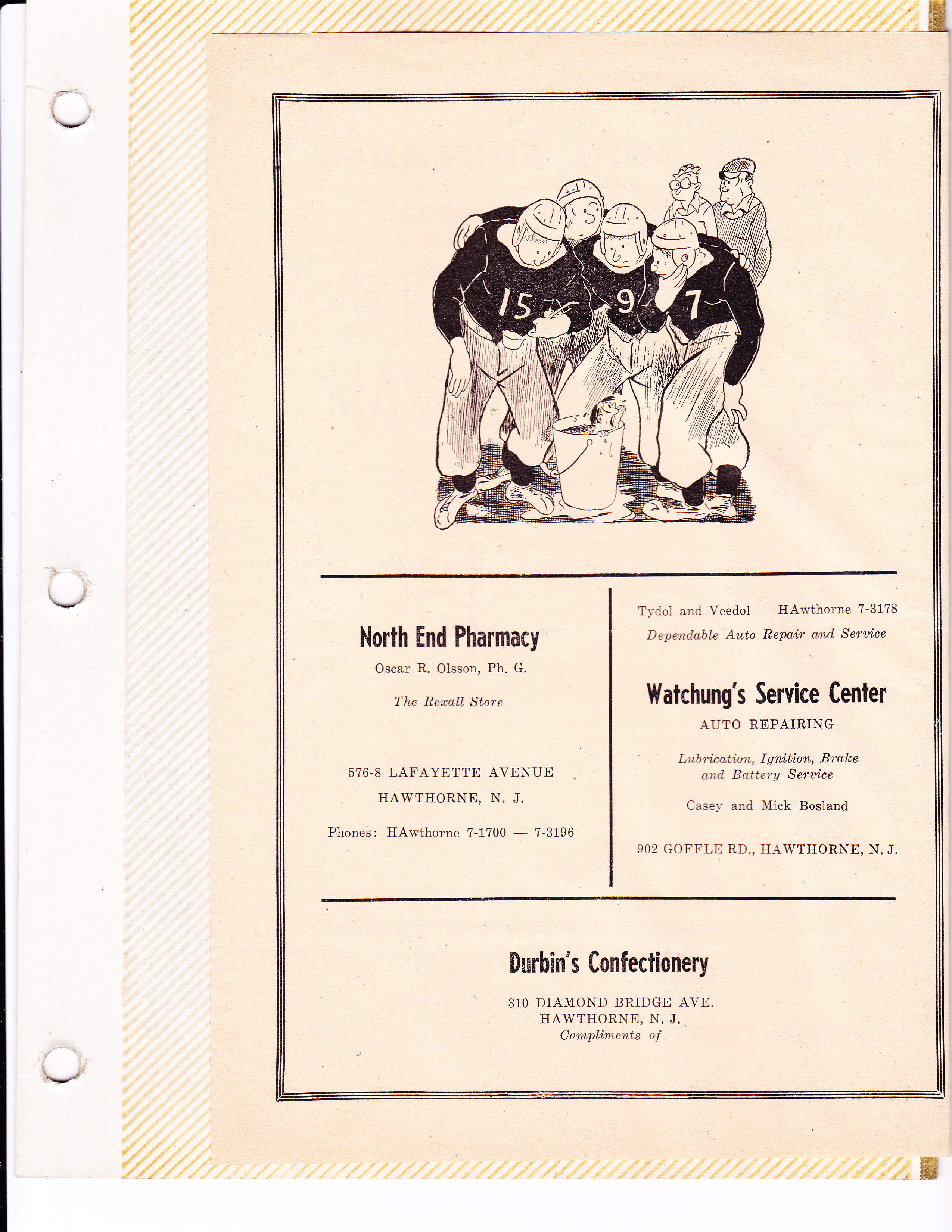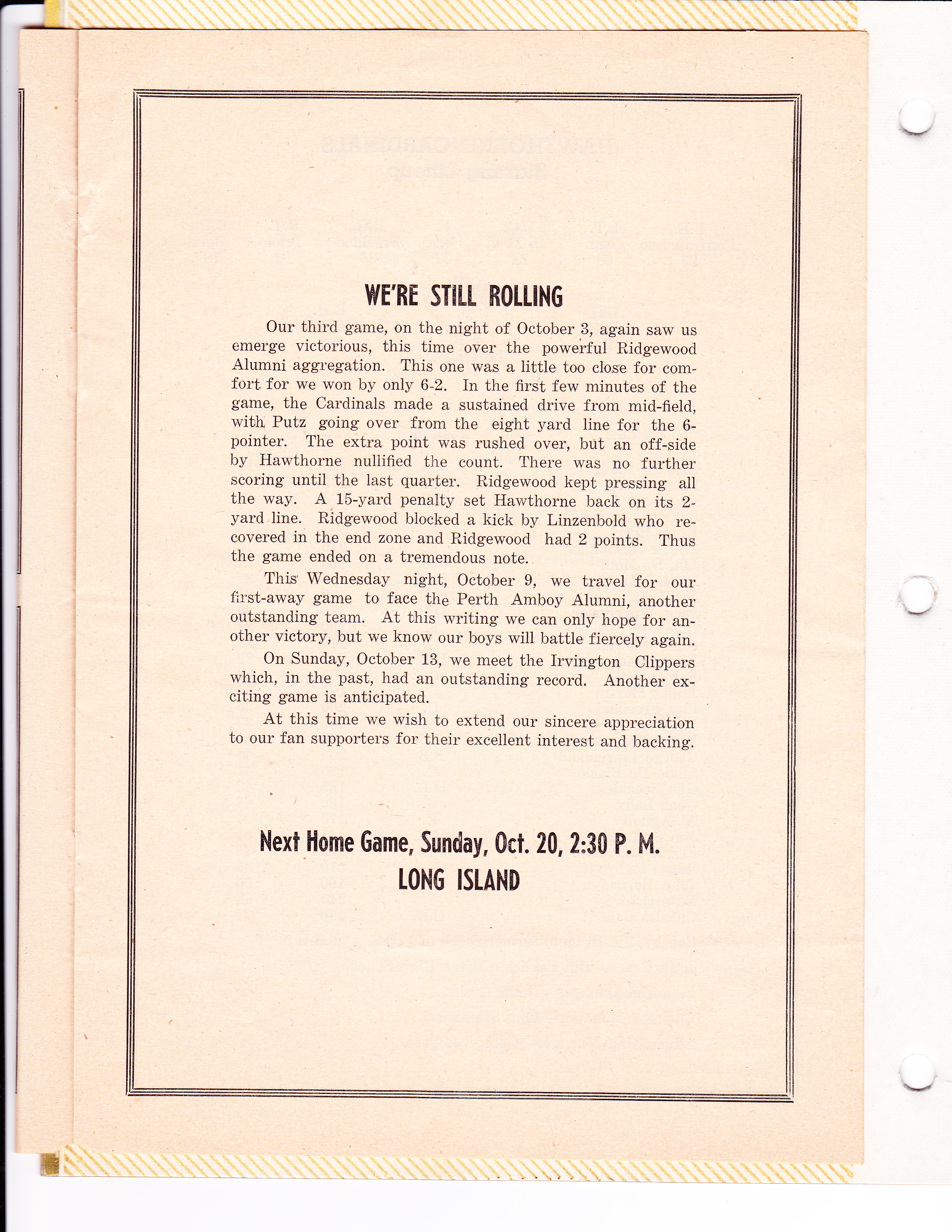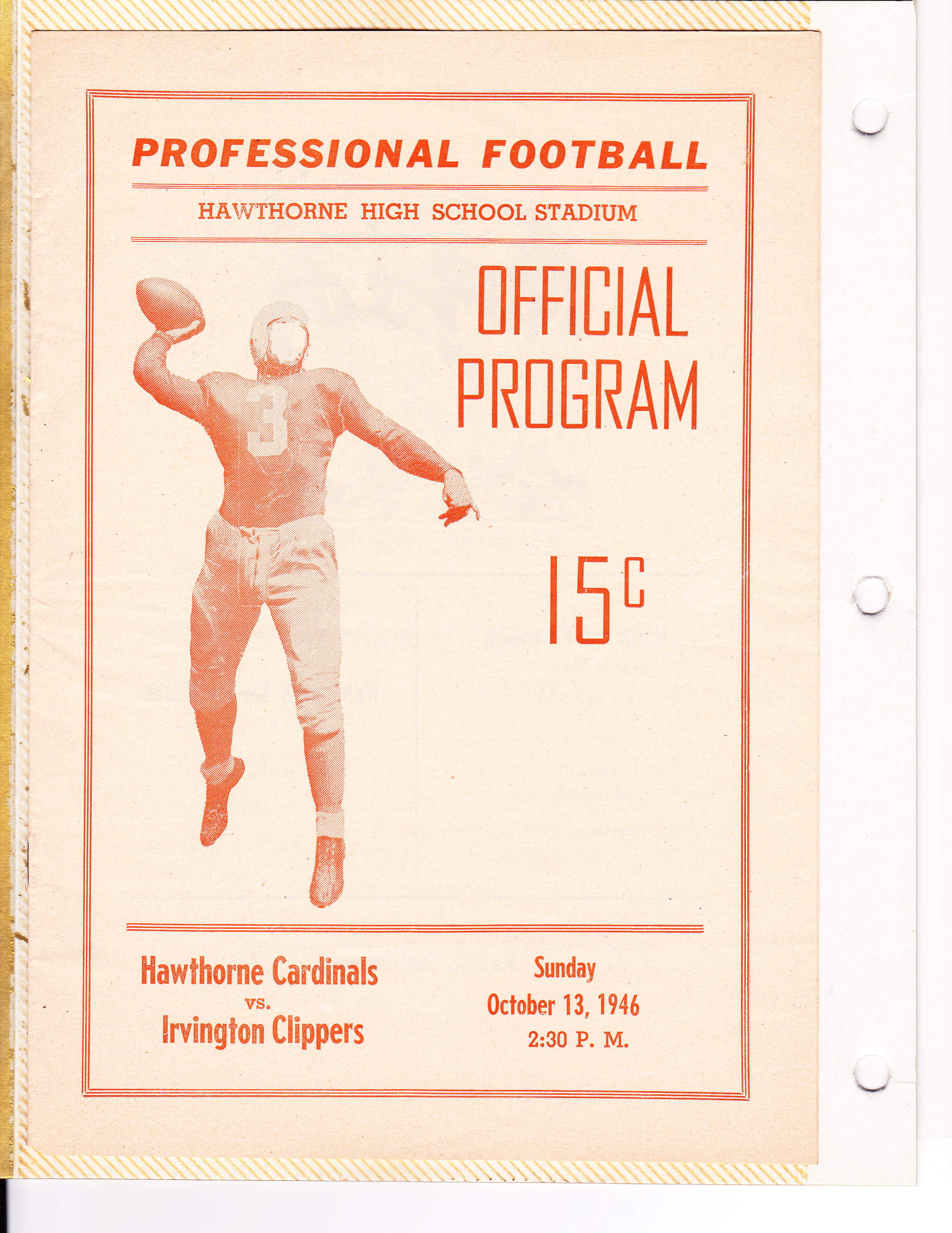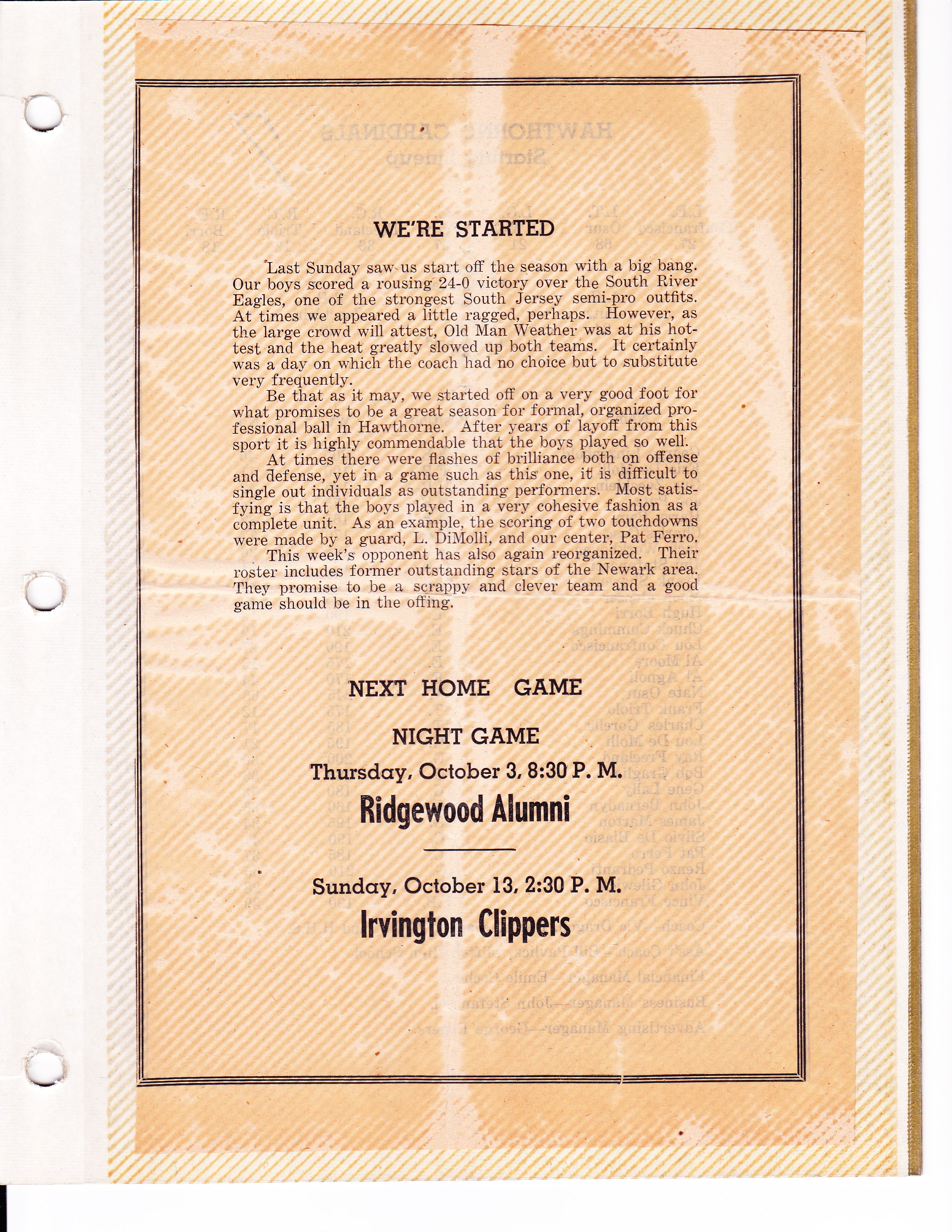 Page 1 of a Hawthorne (NJ) Cardinals program, Oct. 13, 1946.