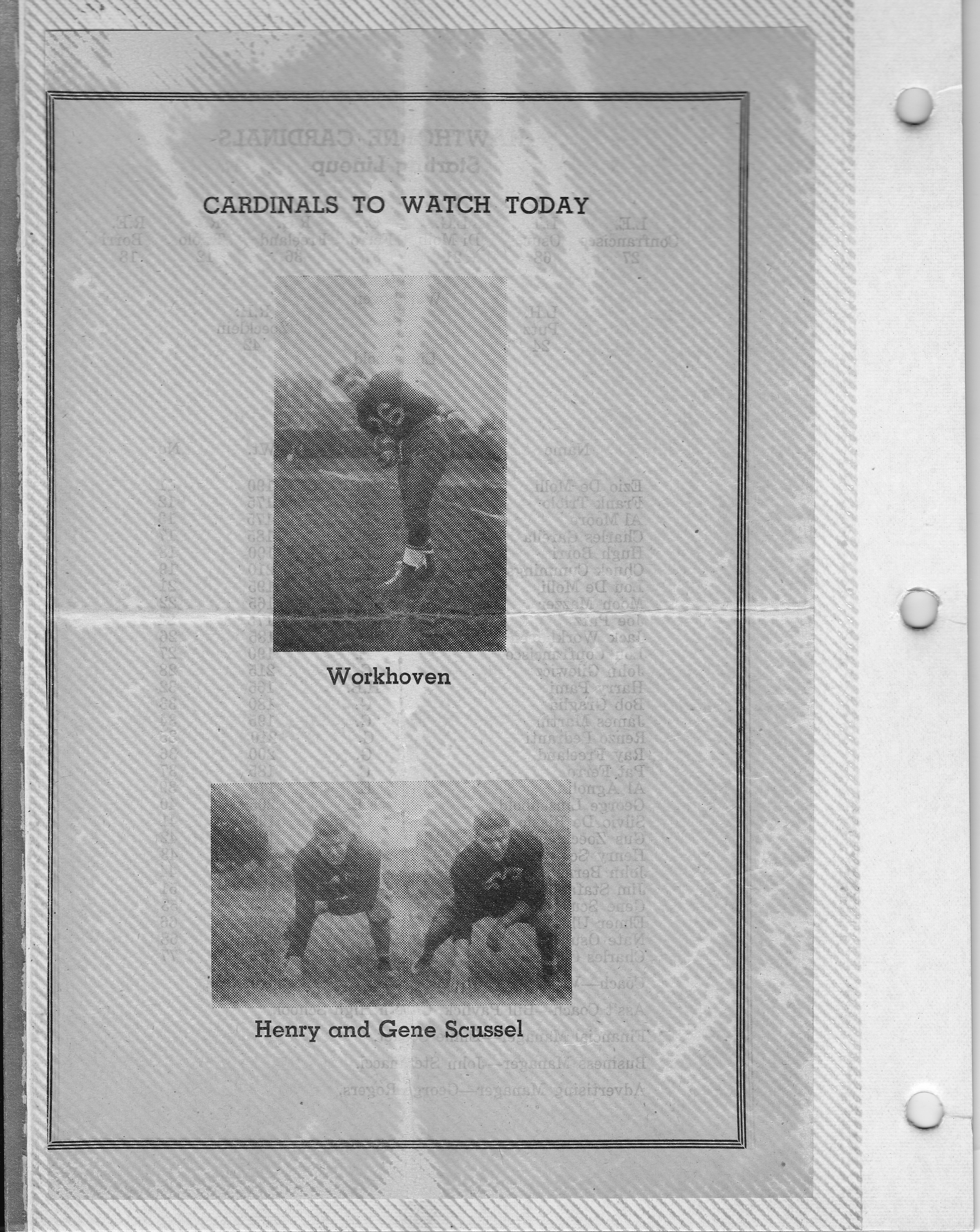 Cardinals flyer: “Cardinals to Watch Today” (Workhoven and the Scussel twins).