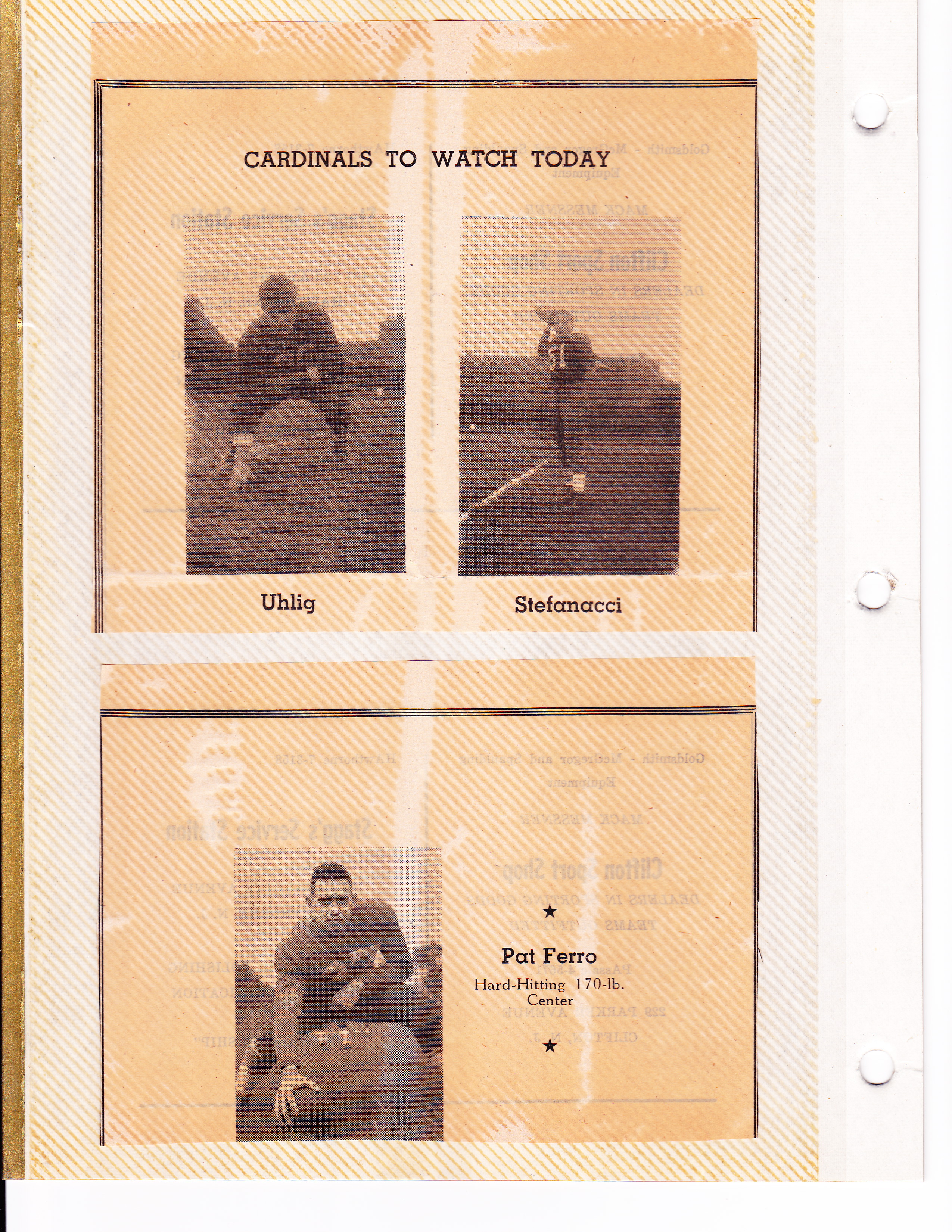 Portions from Cardinals’ program Top: “Cardinals to Watch Today” (Uhlig and Stefanacci) Bottom: “Pat Ferro